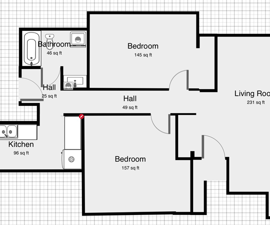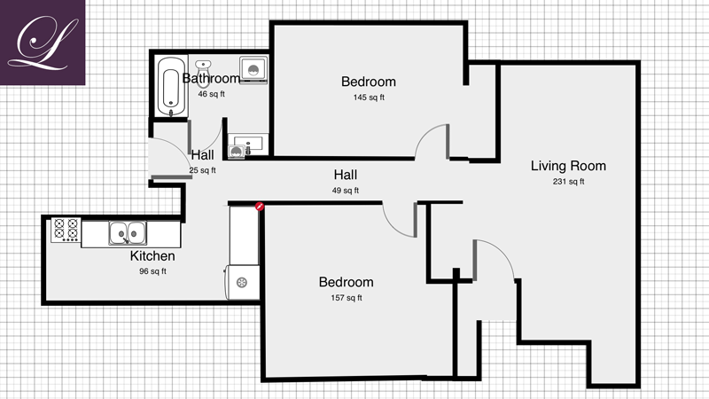 • 2 Bedrooms with decent closet space (~150’ each)